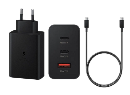 SAMSUNG CARGADOR RAPIDO DE 3 PUERTOS USB/USB-C CON CABLE USB-C TO USB-C 65W NEGRO