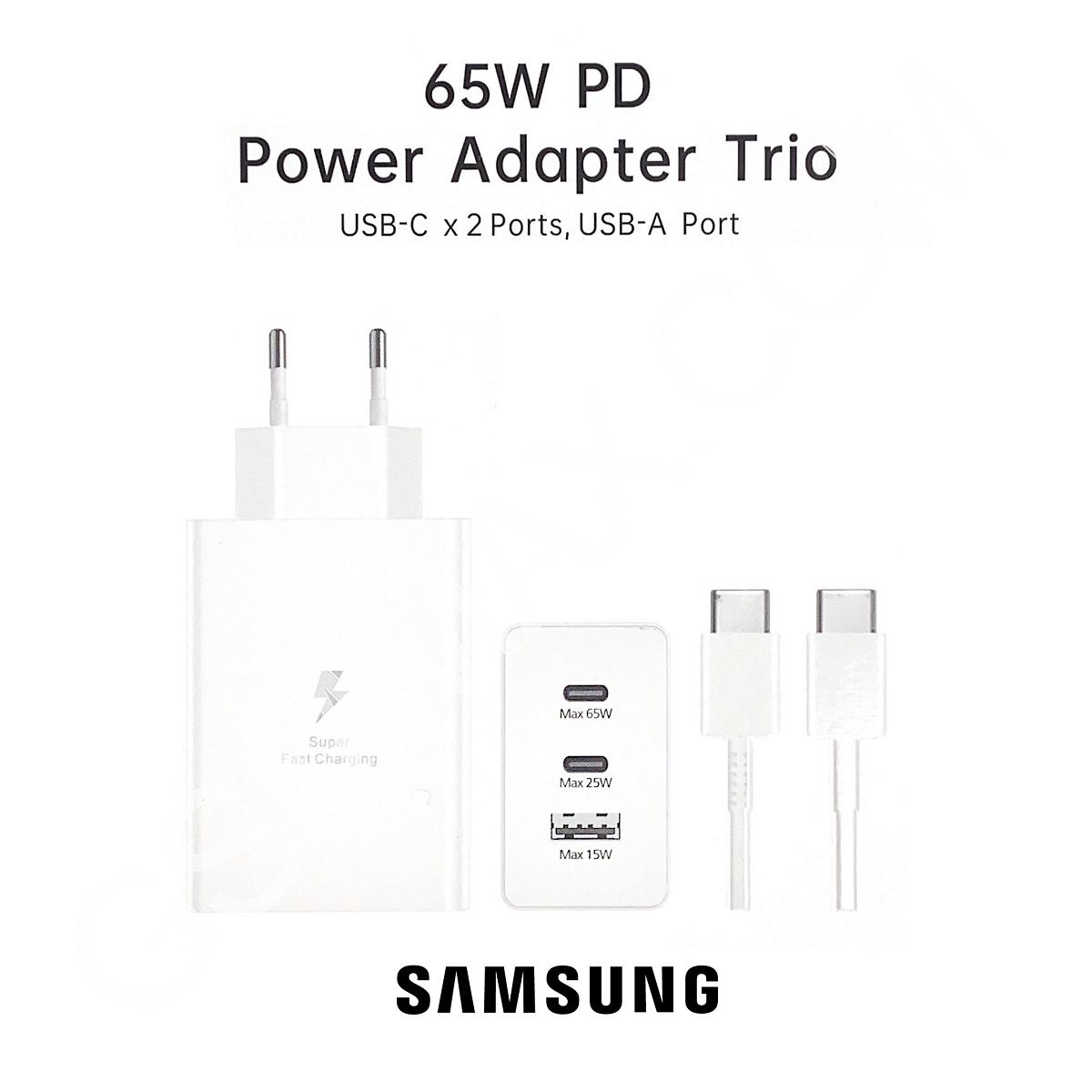 SAMSUNG CARGADOR RAPIDO DE 3 PUERTOS USB/USB-C CON CABLE USB-C TO USB-C 65W BLANCO