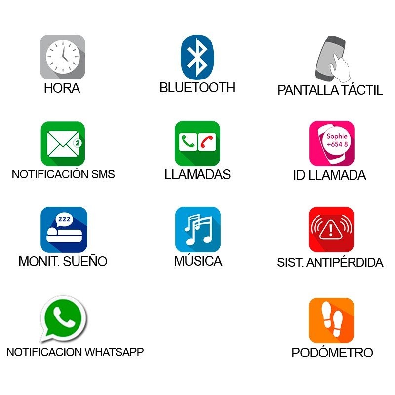 - Notificación de mensajes de redes sociales, chats, SMS, etc.